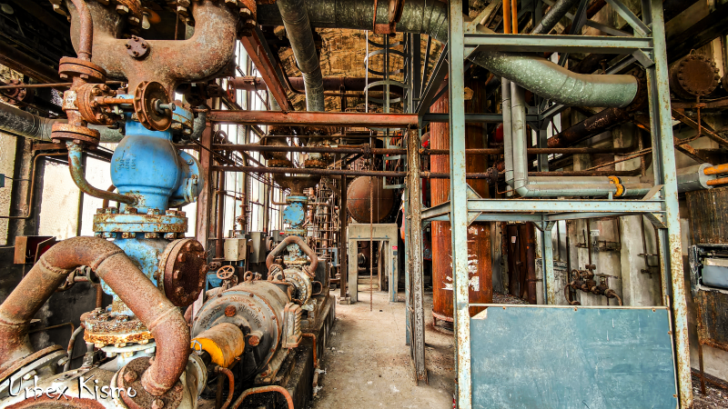 The Alienworks Power Plant is an old but quite well preserved power plant in France. Dating back to the 1930s the five turbines remain in good condition, but unfortunately have been covered with a little bit of graffiti. All five turbines are a different design, and are all different sizes. Presumably they had been added at different times to serve specific purposes. The control room is located on a mezzanine floor overlooking the turbine hall, with a sweeping curved staircase at either side.