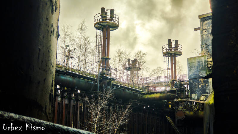 From above, the forgotten giants reveal their true scale. With our drones, we soared over the imposing Cokerie de Marchienne and the haunting Blue Powerplant two iconic remnants of a bygone industrial era. Once alive with fire and energy, they now lie silent, overtaken by time and nature. The tanks store separated oils and other extracted residues are collected and eather processed or discarded. While gas purification can be achieved through other means, centrifugal extraction remains one of the most effective methods.
