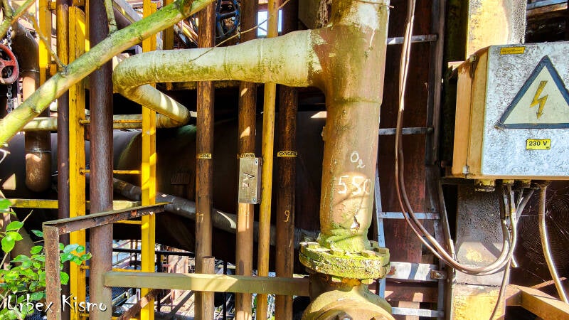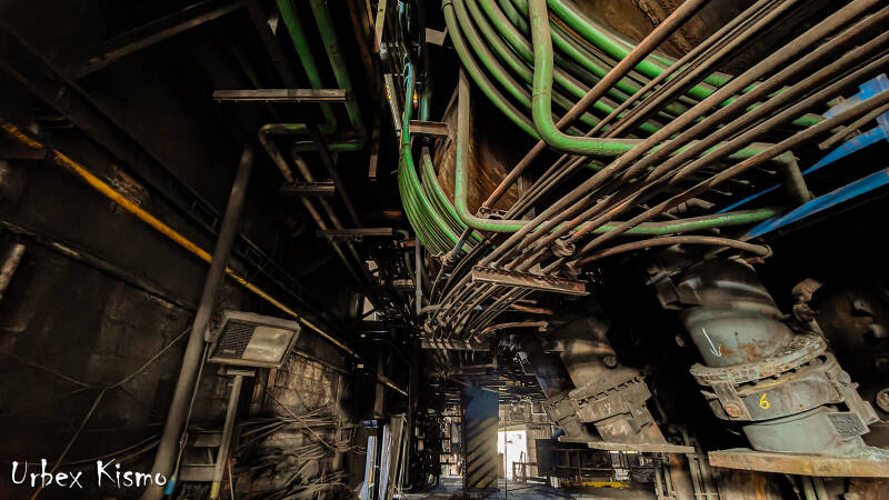 The control room of the blast furnace still in a good condition. This is where the blast furnace was controlled and all administration was kept.