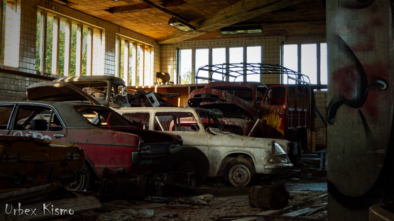 Many of the specimens are no longer in good condition: nature and vandalism have taken over this place. This old garage is a picture for photographers!